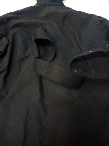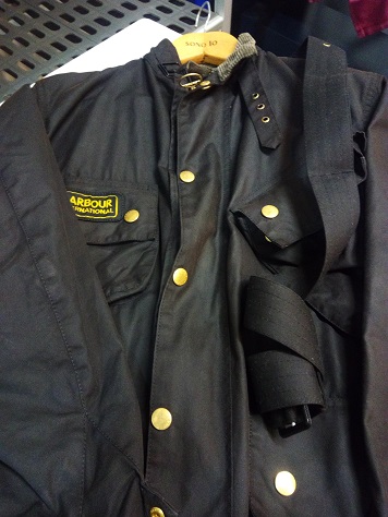 En nuestro caso, el deterioro es general y la perdida de color es homogenea. Tal y como se puede apreciar en las siguientes imagenes, la chaqueta barbour negra ha perdido una buena parte del encerado, y el tejido se aprecia como rojizo. Le hemos puesto el cinturón (que no se había utilizado nunca) para que pueda apreciarse claramente esa perdida del color.