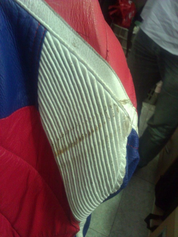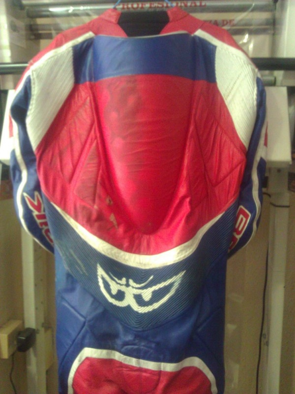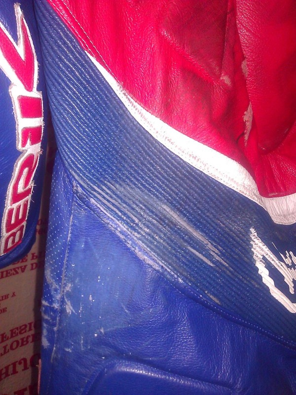 En las siguientes imágenes podemos apreciar con claridad el grado de suciedad, así como los daños ocasionados en la indumentaria de motorista tras la caída.