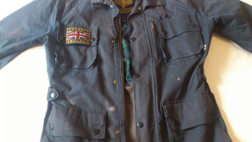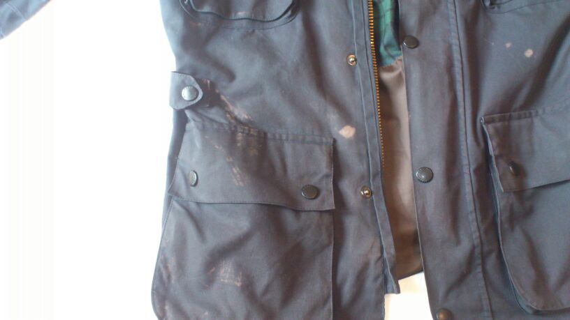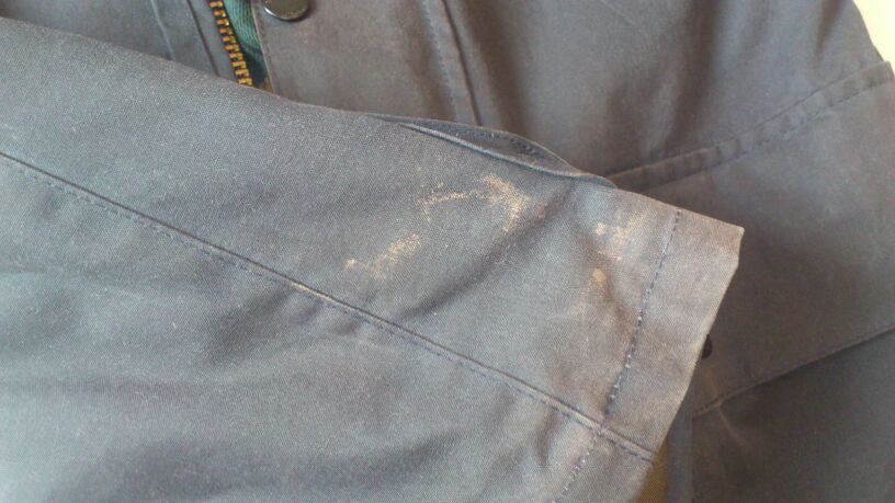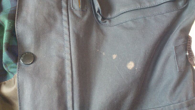 Nuestro cliente estaba disgustado con el tratamiento que se le habia dado con anterioridad, ya que la prenda habia cambiado de aspecto por haber sido tratada como un barbour. Por otro lado la prenda se veia apelmazada y con una rigidez excesiva. Uno de nuestros temores era que se hubiese dañado el poliuretano, con lo que la hackett habría perdido sus propiedades impermeables y aislantes.