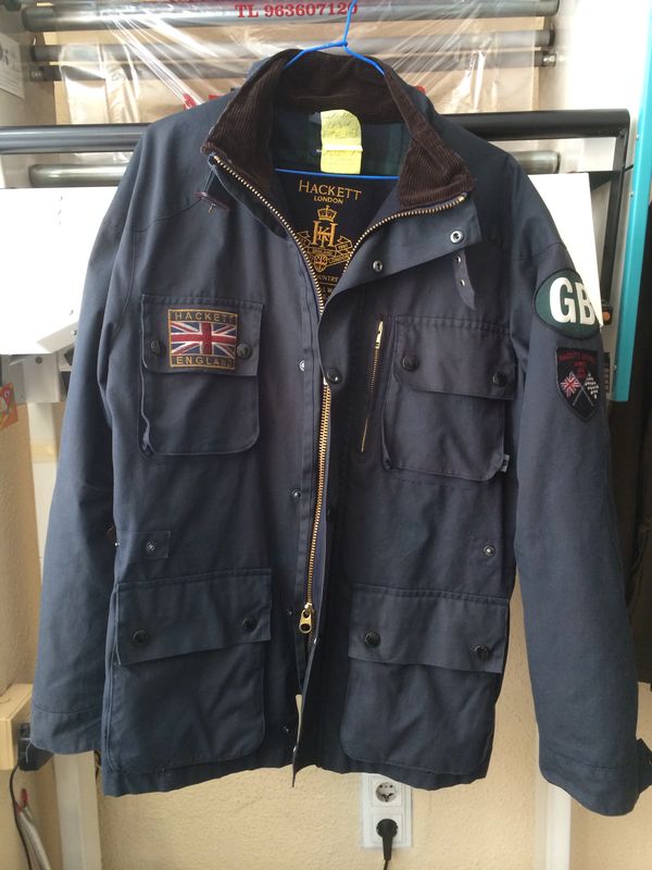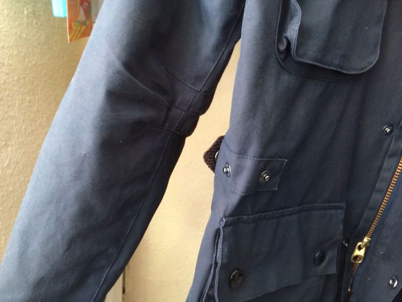 Nuestro trabajo consistió en un lavado suave y retirar toda la suciedad y grasa añadida a la prenda en anteriores procesos de limpieza, y restaurarla con los acabadores apropiados. Conseguimos devolver el aspecto original a la prenda sin dañar el aislamiento de poliuretano. La verdad es que una vez acabada la hackett, esta mostraba colores y detalles que estaban ocultos tras capas y capas de cera-grasa. En la siguiente imagen puede observarse como quedo.